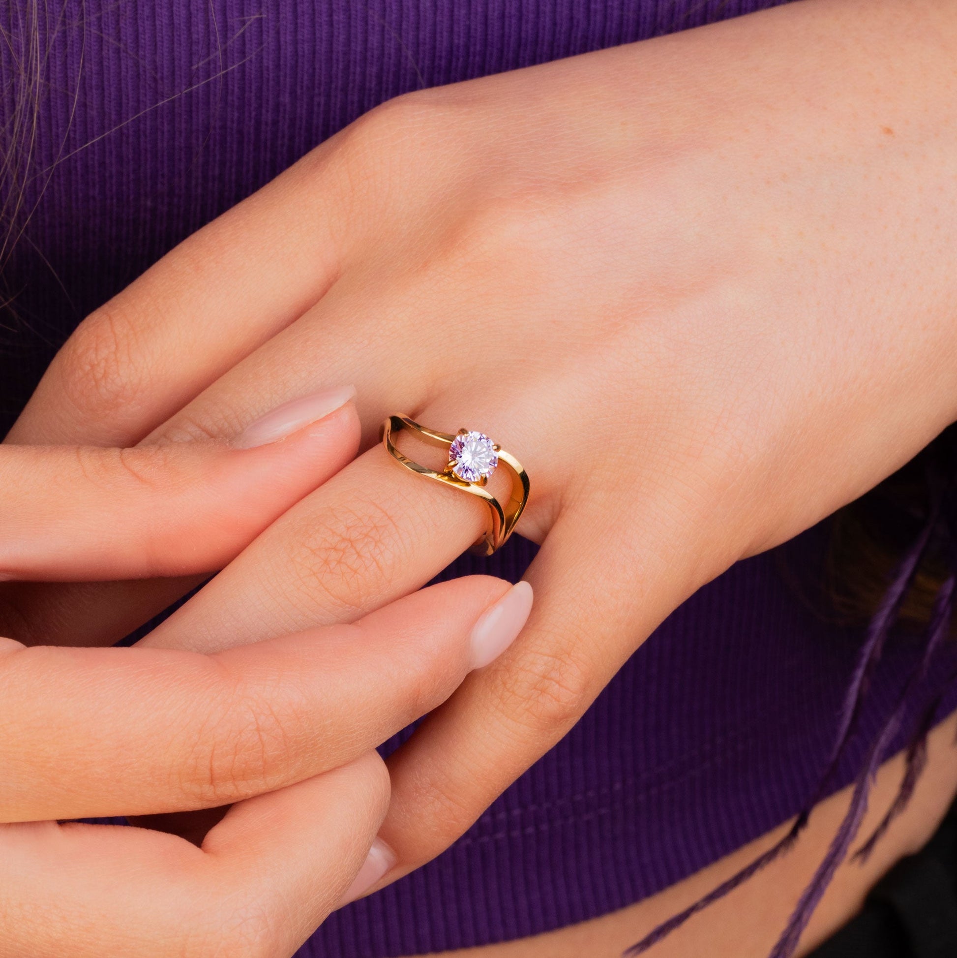 O anel De Melano Twisted Tamara é uma adição elegante à sua coleção. O design vazado e as linhas fluidas conferem a este anel uma aparência única e peculiar. O anel Tamara tem 12 mm de largura e está disponível em revestimento prateado, dourado rosé ou dourado.